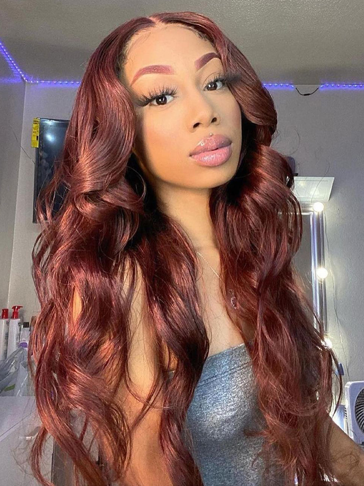 5*5 Pre-cut Lace Closure Human Hair Wig Reddish Brown Body Wave 150% Density